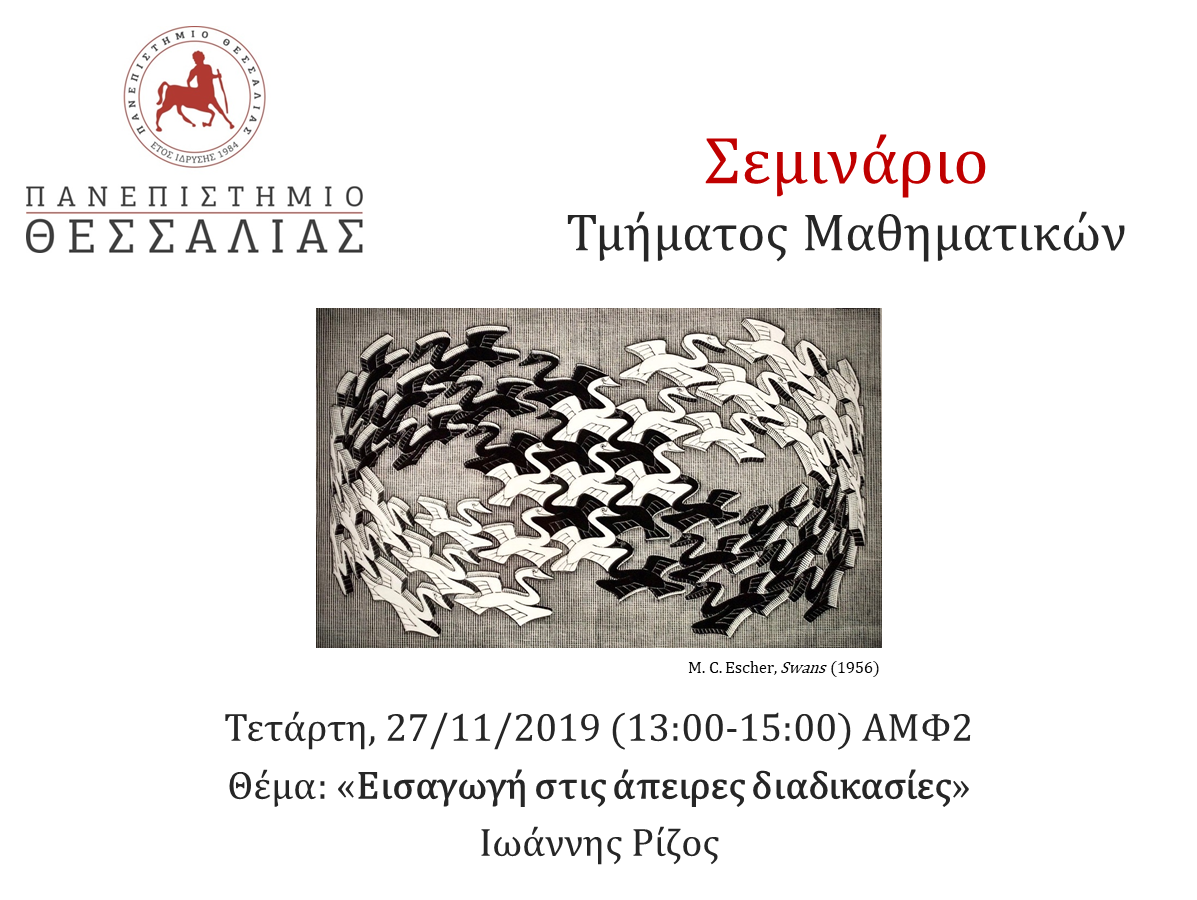 | Σεμινάριο Τμήματος Μαθηματικών 27/11/2019 Δημιουργός: ΙΩΑΝΝΗΣ ΡΙΖΟΣ |